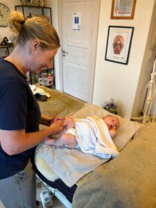 Vi fik vores første barn i starten af januar, og var allerede fra start klar over hun havde en favoritside. Udover det virkede hun bare ikke helt tilpas i sin krop, og begyndte at bøvle med maven. Som førstegangs forældre er det en ny verden. En bekendt anbefalede mig at prøve behandling ved Jeanette fra Skovmosegaard, som kun ligger 5 minutter fra vores hjem – altså nemt lige at smutte afsted med en nyfødt.